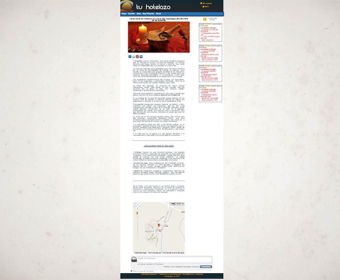 Una noche en un hotel con encanto en España para dos personas, con un gran número de extras, elegido por TuHotelazo. + Cena romántica para dos personas + E-mail personal de agradecimiento + Follow en Twitter